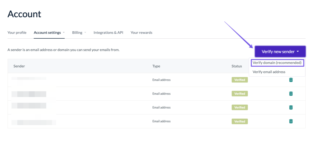 To begin, navigate to your accounts page on the EmailOctopus dashboard. Once there, proceed to the “senders” tab located within the account settings. Simply add your domain and follow the step-by-step verification process.