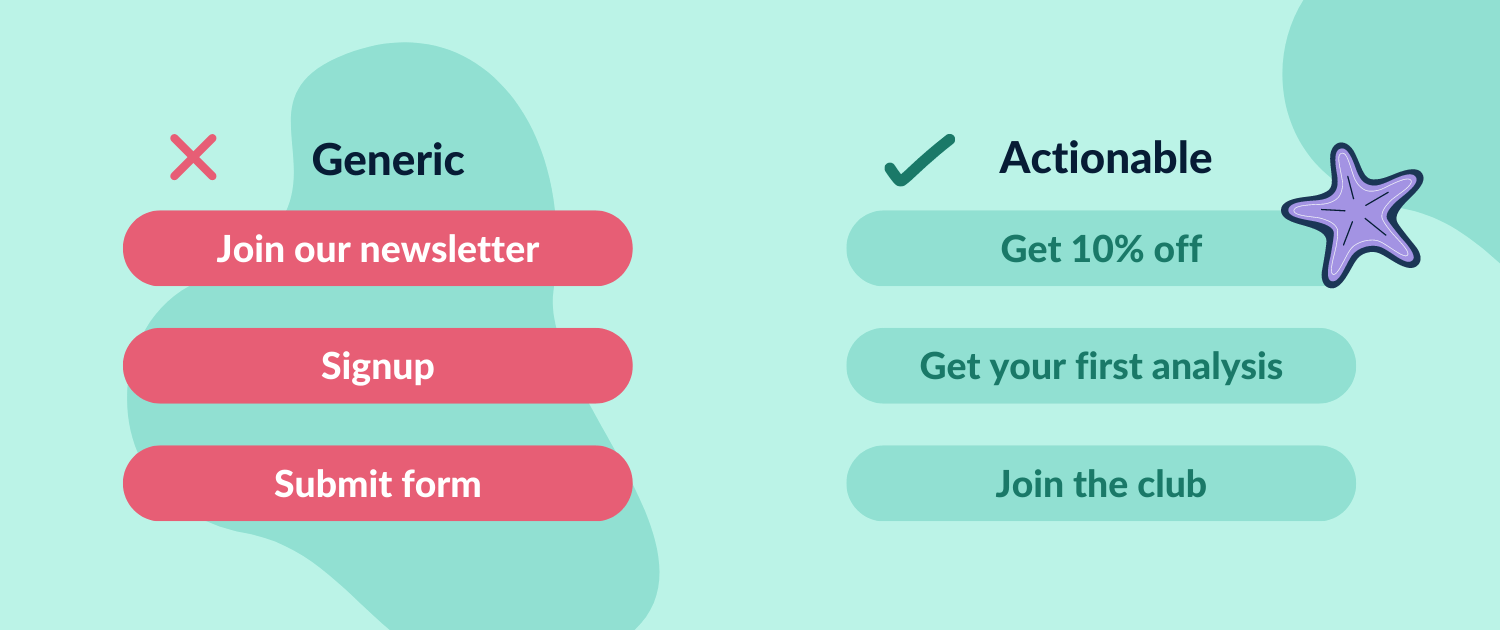CTAs that say “Subscriber” or “Submit” are boring and don’t motivate the user to take any action.
