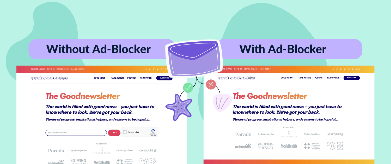 Here’s a real-world example of “Good Good Good” who were promoting their newsletter, but apparently their form wasn’t visible as their ESP’s scripts were blocked.