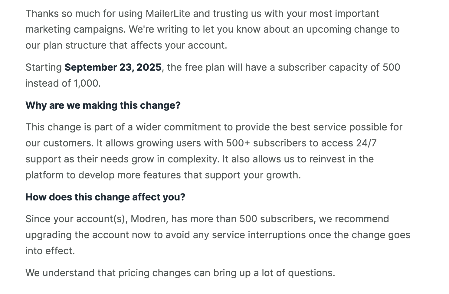MailerLite has long been a favourite email marketing tool because of its low prices and generous free plan. However, in 2025, this has changed, and many people are already feeling the impact.